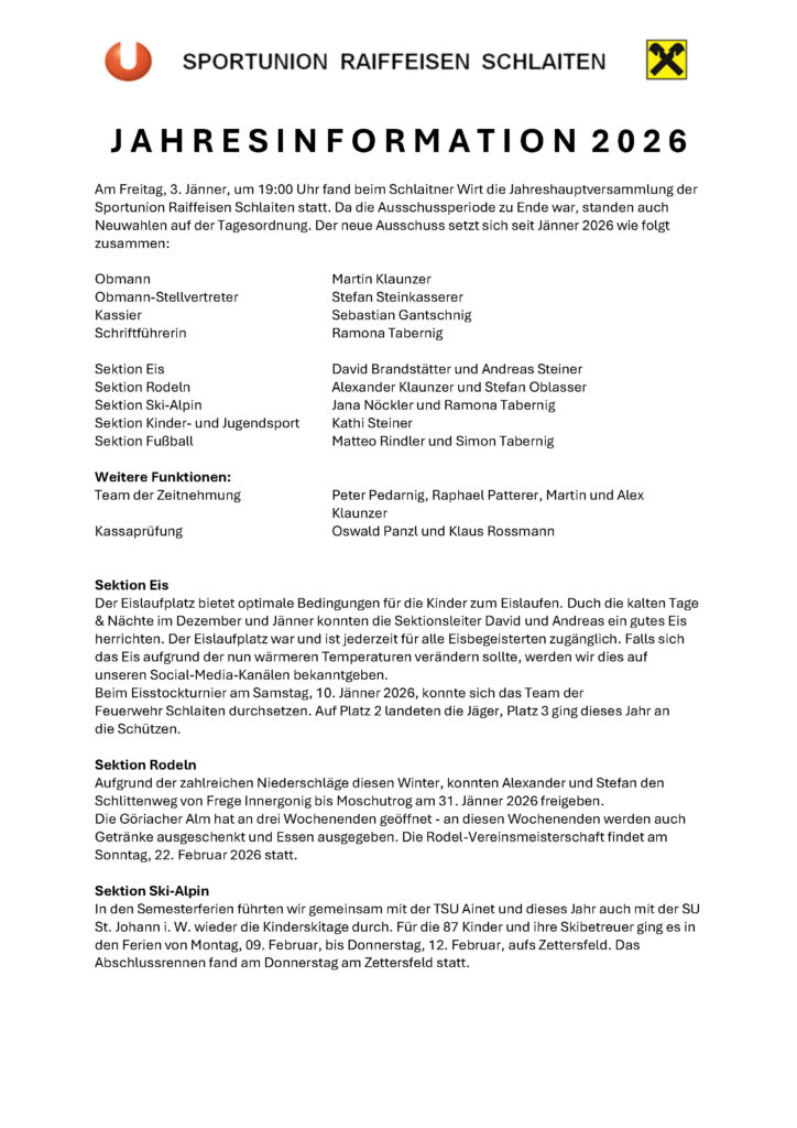 Am Sonntag, den 23. Februar 2025, fand bei besten Bedingungen die Vereinsmeisterschaft Rodeln statt. Nachdem das vorherige Wochenende Schnee gebracht hatte, machten sich Seppl Klaunzer und Hans-Peter Hussl sofort mit dem Pistengerät an die Arbeit, um den Rodelweg vom Moschutrog bis zum Forstgarten perfekt zu präparieren.